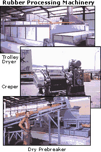A complete range of products are available and includes the Slab Cutter, Wet & Dry Prebreakers, Hammermill, Rotary Cutter, Creper, Pelletizer, Crusher, Extruder, Shredder, Box & Trolley Dryers, Hydraulic Press, Shrink Wrap Oven, Sheeting Battery, Conveyors, Pumps etc.